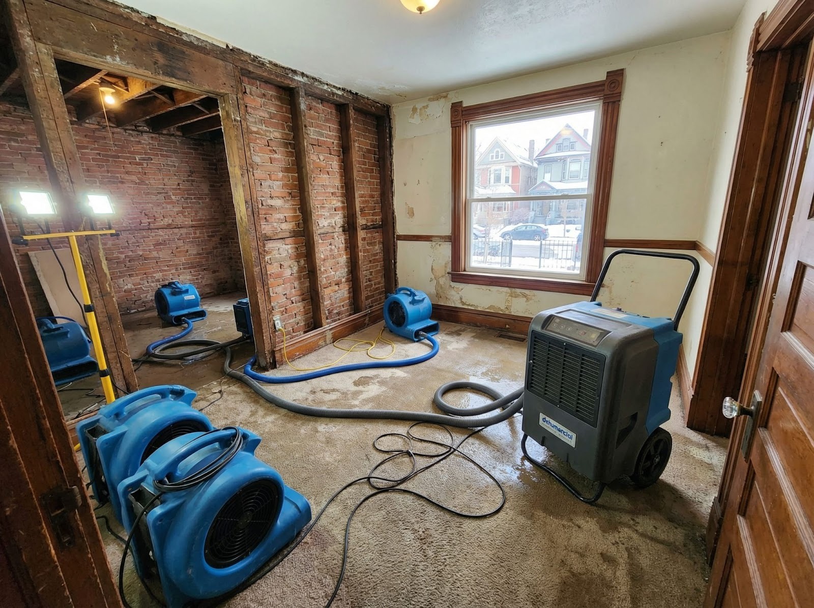 The first step is always removing the standing water. In older homes with porous materials like hardwood or lath, every minute counts to prevent the materials from warping beyond repair or suffering permanent saturation.