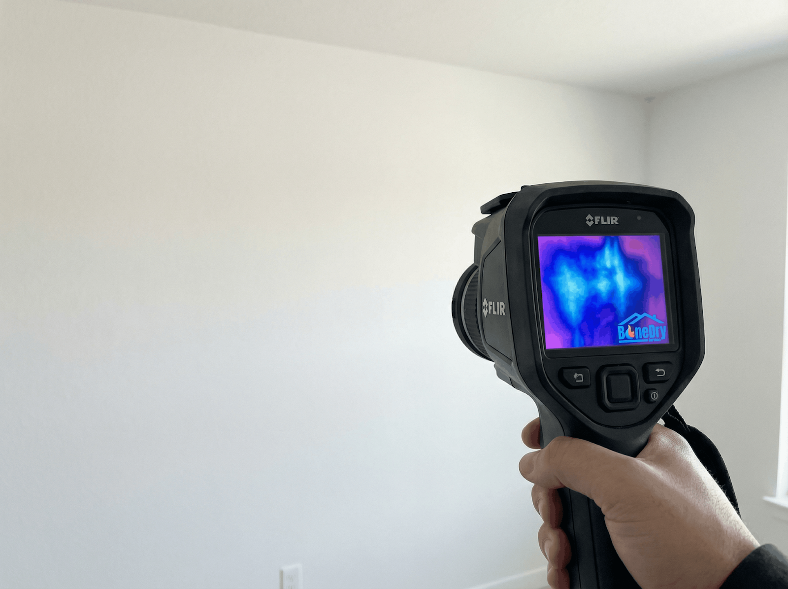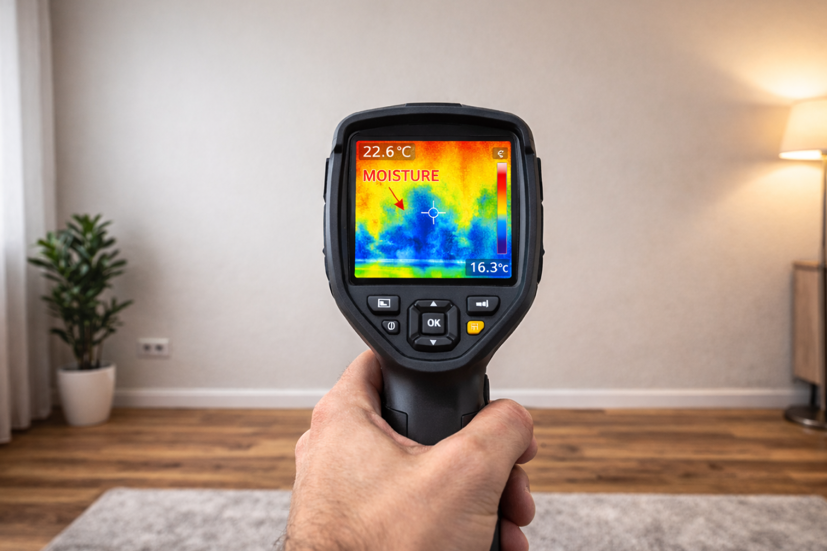 To ensure a property is truly safe, we utilize moisture mapping. Water restoration without mapping is merely guesswork. By identifying the exact boundaries of the moisture pocket, our team can target specific areas rather than tearing out entire rooms unnecessarily. We utilize Infrared (IR) Cameras to detect temperature differences caused by evaporative cooling. These cameras reveal blue "cool" spots where water is hiding behind a seemingly dry coat of paint.
